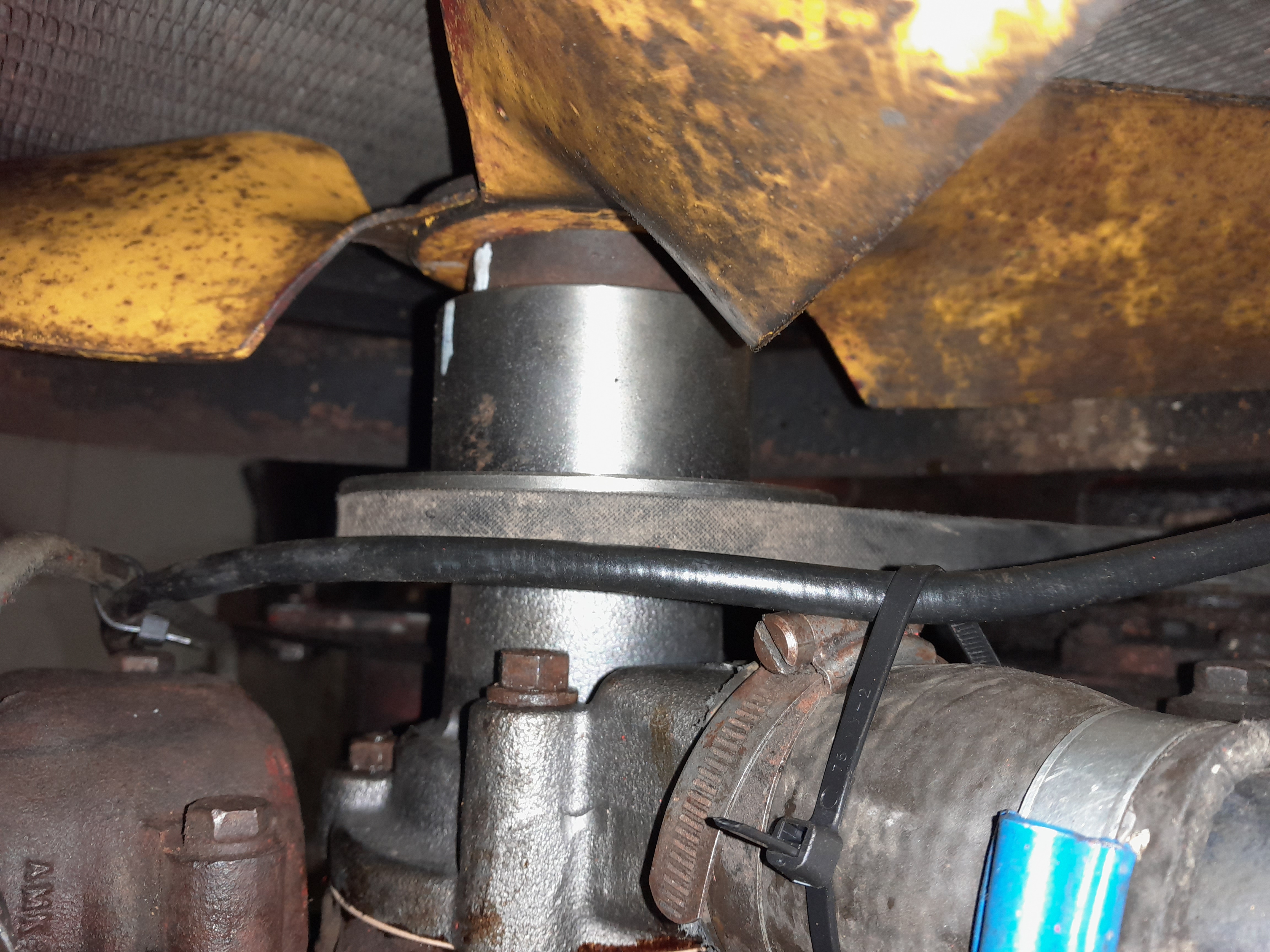 Saa toki jokainen purkaa vaikka kampiakselin irti vesipumpun takia, mutta minä en ole syyläriä pellolla alkanut irroittamaan, saati laskuttamaan asiakasta vesipumpun vaihtotyössä syylärin irroituksesta. Turhaa työtä, jota pitää välttää, kun tekee laskutushommia. Nuffin vesipumppu kuin myös muidenkin koneiden vesipumput lähtee yleensä ilman suurempia purkamisia. Siivikko vain välistä pois, letkut irti, pumpun pultit irti ja sieltä se lähtee.