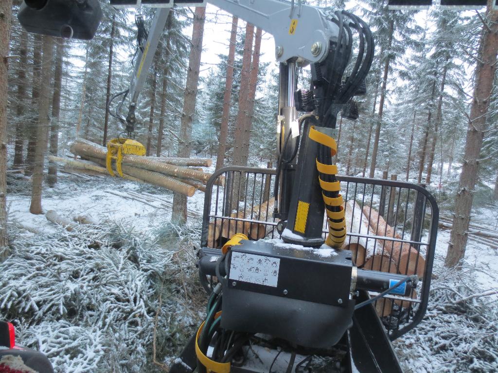 Miltei kaikki hakatut on ajettu lanssille, loput käydä vinssin kanssa hinaamassa näkösälle. Lunta häiritseävästi paikoitellen, ja puissa itsessään liikaa.